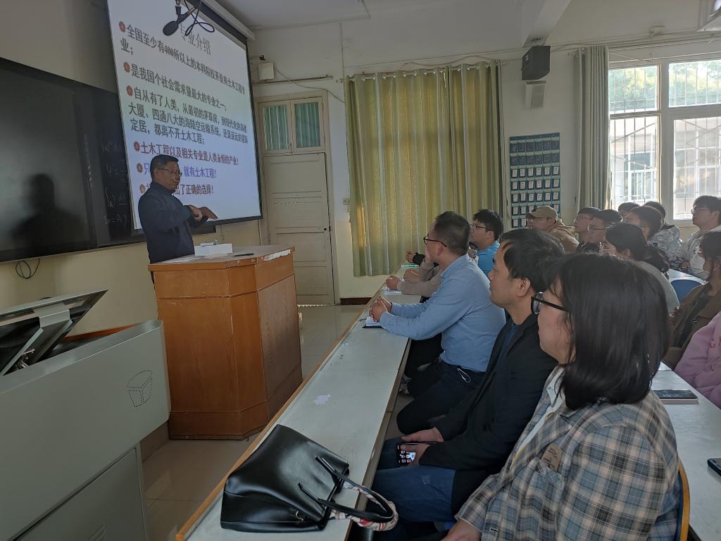为使2022级土木工程专业新同学能更好的适应老员工活,更加详细的了解土木工程专业,明确学习要求。土木工程系于2022年10月13日下午四点半在教3-12教室举行了新生专业入学教育活动,本次活动邀请了我系王述超老师为专家做专题讲座。冀鹏副书记,高春华、张昊、邓林老师参加了本次讲座。