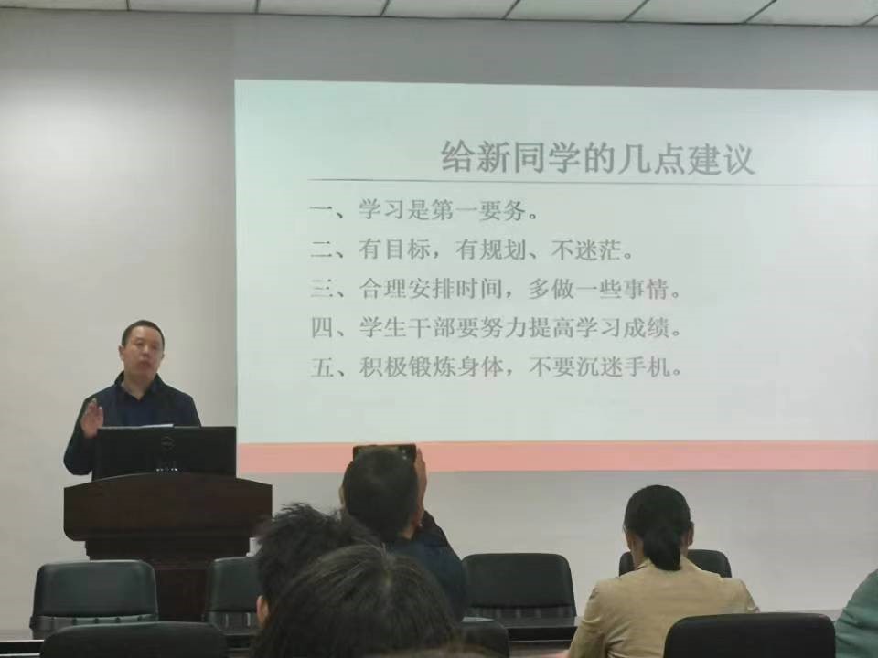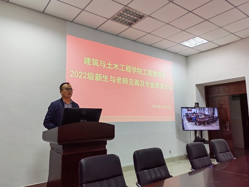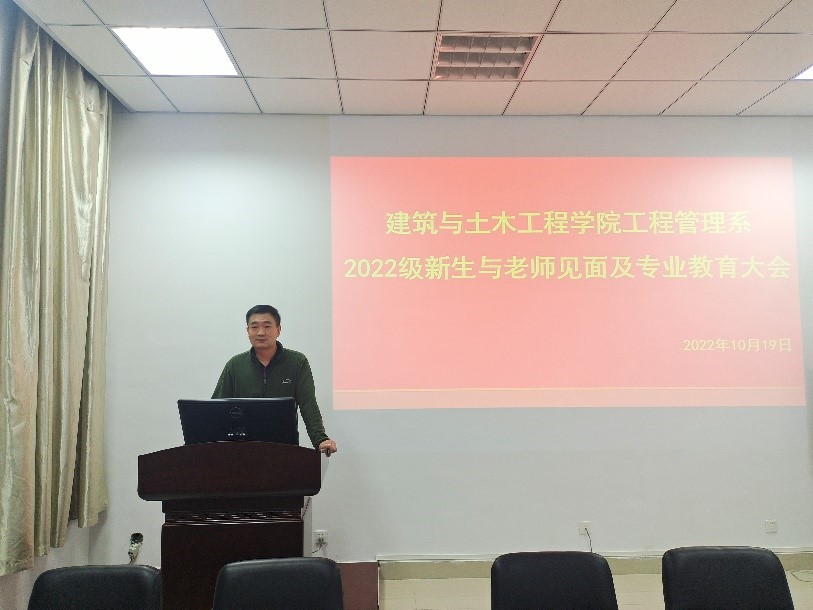 张宗领老师首先给新同学介绍了工程管理系的每位老师及办公地点,新同学在专业方面如有疑惑可主动联系工程管理系的老师们,老师们将会耐心解答。随后张宗领老师给新同学提了几点建议:一、学习是第一要务;二、有目标,有规划,不迷茫;三、合理安排时间,多做事情,锻炼多方面能力;四、员工干部更要努力提高学习成绩;五、积极锻炼身体,不要沉迷手机。希望每位新同学的老员工活充实而有意义,为未来的美好前程打下坚实的基础。