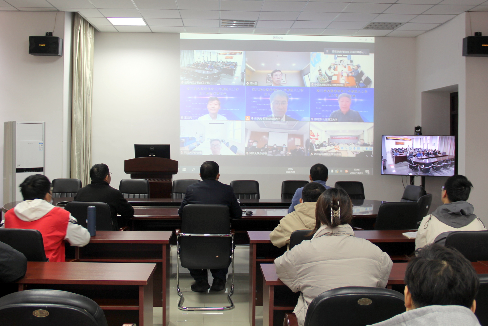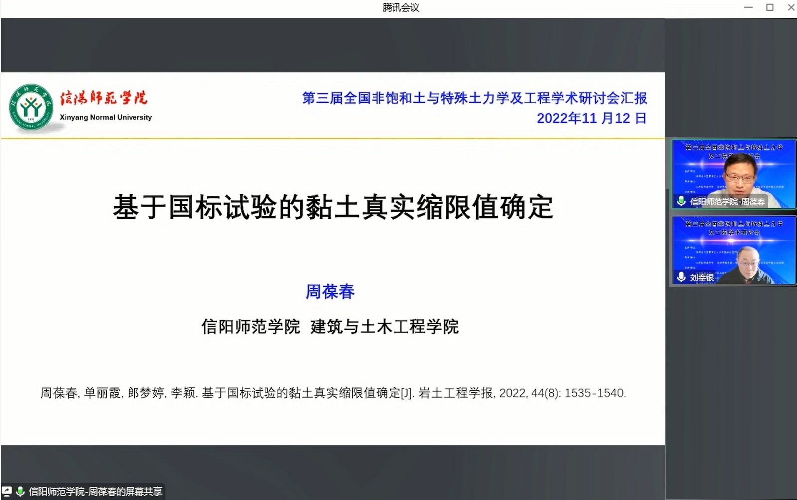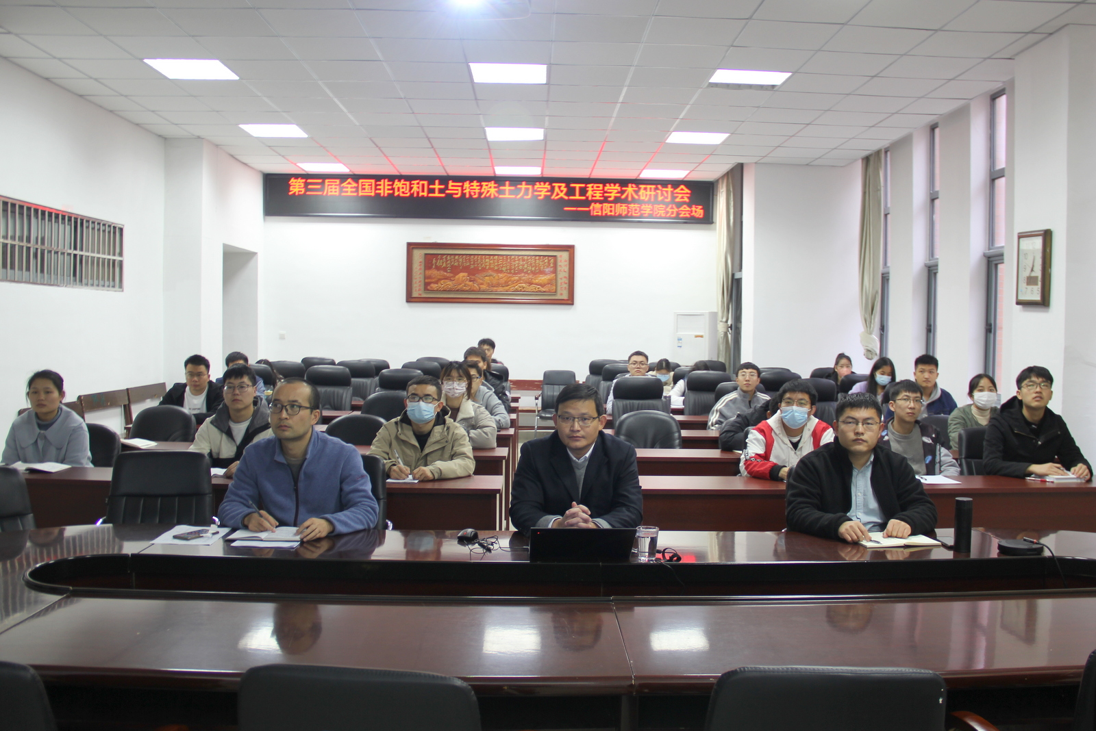 公司在365英国上市公司会议室设立了信阳师范公司分会场,分会场参会师生50余人。会议邀请365英国上市公司经理周葆春教授作了题为“基于国标试验的黏土真实缩限值确定”的特邀报告。