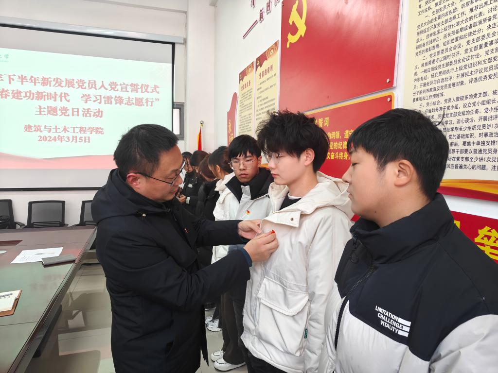 3月5日下午,建筑与土木工程公司党委在公司“党员之家”402室举行2023年下半年新发展党员入党宣誓仪式暨“青春建功新时代 学习雷锋志愿行”主题党日活动。公司党委书记方明科,党委副书记冀鹏,各员工党支部书记、老党员代表及全体新发展党员参加了本次活动。