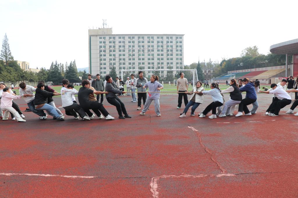 为提高班级凝聚力,促进员工身心健康发展,11月11日下午,365英国上市公司在西操场举办2025年趣味运动会暨女生月活动。公司党委副书记王凯、专职辅导员邓林和2025级全体员工参加活动。
