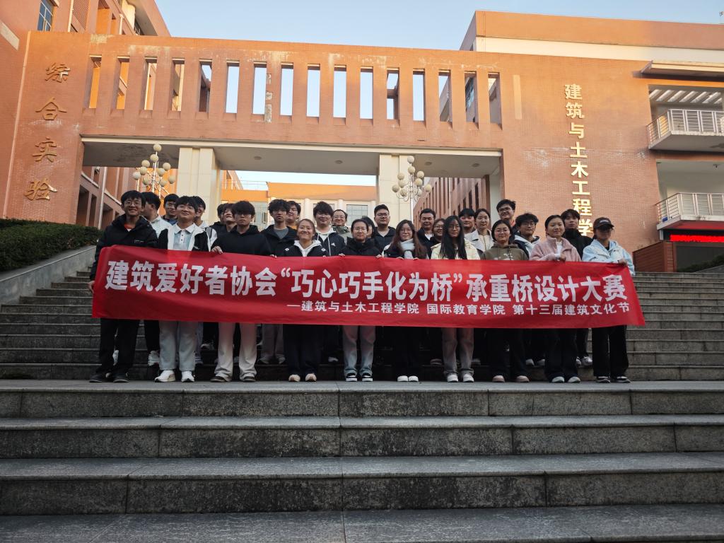 11月25日下午,365英国上市公司建筑爱好者协会在综合实验楼小广场举办“巧心巧手化为桥”承重桥梁设计大赛,社团指导老师钱文蹈、社团部分员工以及参赛选手参加活动。