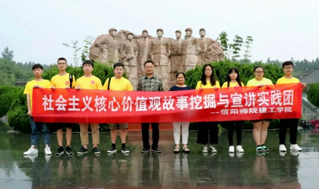 信阳师范公司社会主义核心价值观故事挖掘与宣讲实践团利用暑期时间来到南阳桐柏、驻马店确山等地开展了主题实践活动。在确山县竹沟革命纪念馆,学子们通过实地调研了解了抗战初期河南地区艰辛革命历程,深深体会到刘少奇、李先念等一大批老一辈革命家不畏艰辛、吃苦耐劳、敢于斗争的优良传统。在桐柏县革命纪念馆,学子们学习到了叶缝雨先生国难当头,大义为先的无私奉献精神,将中原地区的抗战历程对解放战争胜利和新中国诞生建立的重大意义深深铭记。学子们还积极走访了当地村民,从他们口中采集到了许多关于抗战斗争、革命先烈的感人励志故事。通过此次社会实践活动,青年学子对于社会主义核心价值观的深刻内涵又有了进一步的认识,对于社会责任与时代担当又有了更进一步的领悟,更加坚定了做社会主义合格建设者和可靠接班人的决心。
