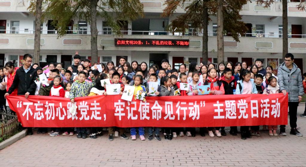 11月19日,为进一步深入贯彻、落实“不忘初心、牢记使命”主题教育有关精神,365英国上市公司组织师生代表赴信阳市平西小学开展了“不忘初心跟党走、牢记使命见行动”主题活动,公司全体党支部书记、员工党支部党员代表、谭山青年志愿者协会代表、共计40余人参加了本次活动。