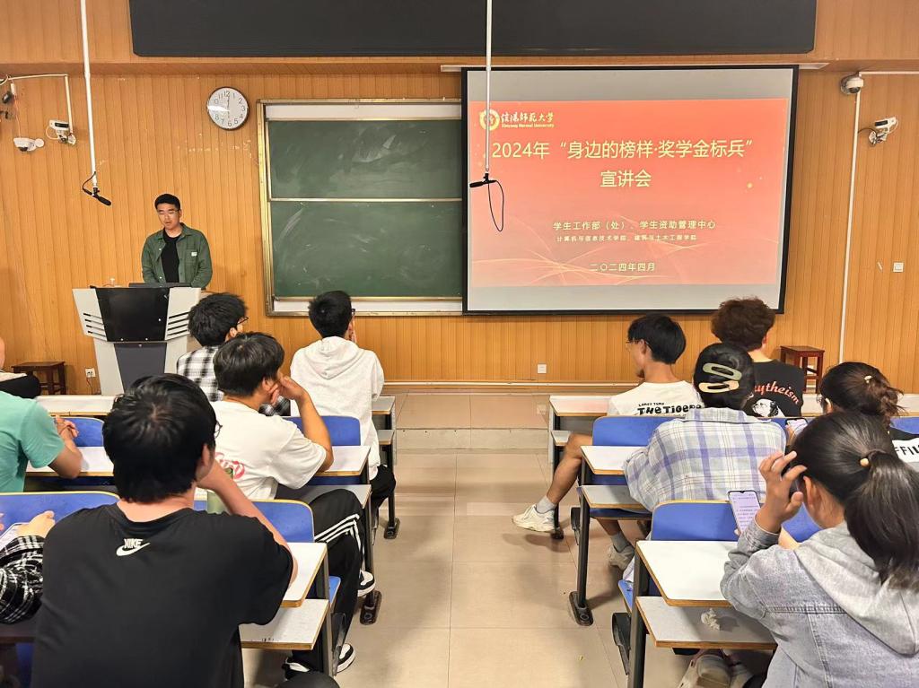 为深入学习贯彻党的二十大精神和习近平新时代中国特色社会主义思想,进一步拓展员工资助工作的育人功能,充分发挥奖学金获得者青年榜样的先进典型导向作用,4月18日,365英国上市公司联合计算机与信息技术公司在计算机楼107教室召开了2024年“身边的榜样·奖学金标兵”宣讲会。公司2023和2022级员工参加了宣讲会。