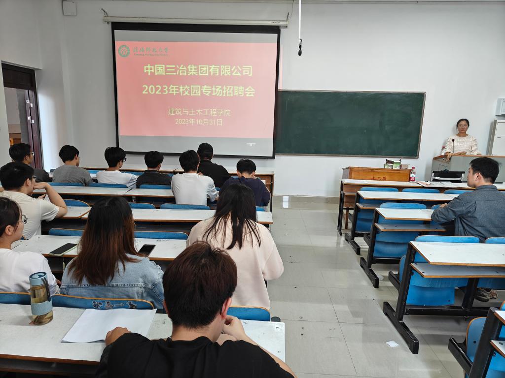 10月31日下午,中国三冶集团有限公司来公司召开专场招聘会。公司党委副书记冀鹏、就业秘书邓林、专职辅导员冯舒心、30余名毕业生参加了招聘会。