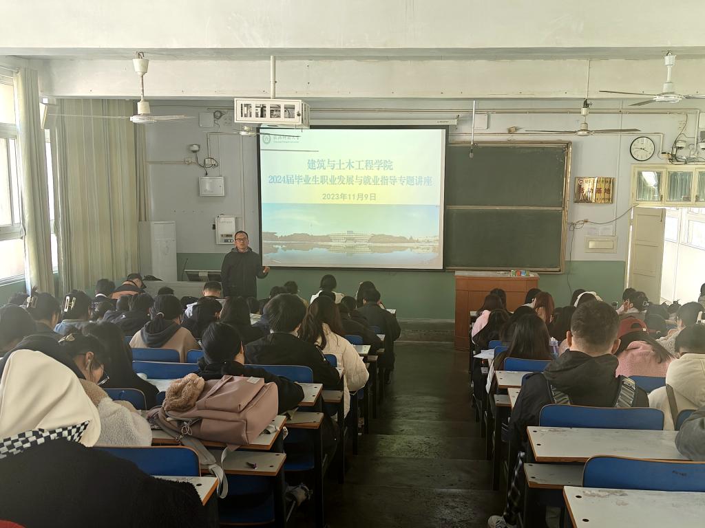 冀鹏首先带领大家分析了建筑和房地产行业发展现状和2024届毕业生就业去向落实的最新情况,对大家就业路径和职业规划提出了指导建议。他指出,本学期毕业生们都在校上课,面临着备战考研和就业等多重压力,大家要调整好心态,做好个人规划,在确保毕业各项工作有条不紊向前推进的同时,要提前做好就业准备。一是要认真学习专业知识,不断提升专业技能;二是要积极参加专业实习实践,充分积累实践经验;三是要积极考取资质证书,努力做到“持证上岗”;四是不断提高人际交往与沟通能力,着力构建良好的人际关系。他最后指出,目前就业形势比较严峻,大家树立正确的就业择业观念,坚持“先就业后择业”。同时,要积极行动起来,不仅要主动参加公司举办的专场招聘会和公司的双选会,还要通过国家24365老员工就业服务平台和公司招聘网站积极关注就业信息。他最后指出,找工作不是一蹴而就的事,也需要多次尝试,希望各位同学通过自己的努力,顺利找到自己理想的一份工作。