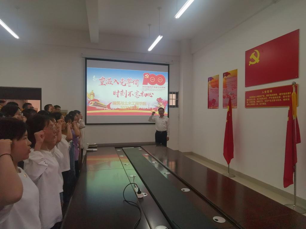 重温入党誓词,时刻不忘初心。在建筑与土木公司党员之家,面对鲜红的党旗,全院员工党员佩戴党徽,举起右手,紧握拳头,声音铿锵,再次庄严地向党宣誓。重温入党誓词使同学们进一步明确了自己的庄严承诺,坚定了理想信念,接受了心灵的洗礼,强化了一名共产党员在新时代里的责任感、使命感和紧迫感。