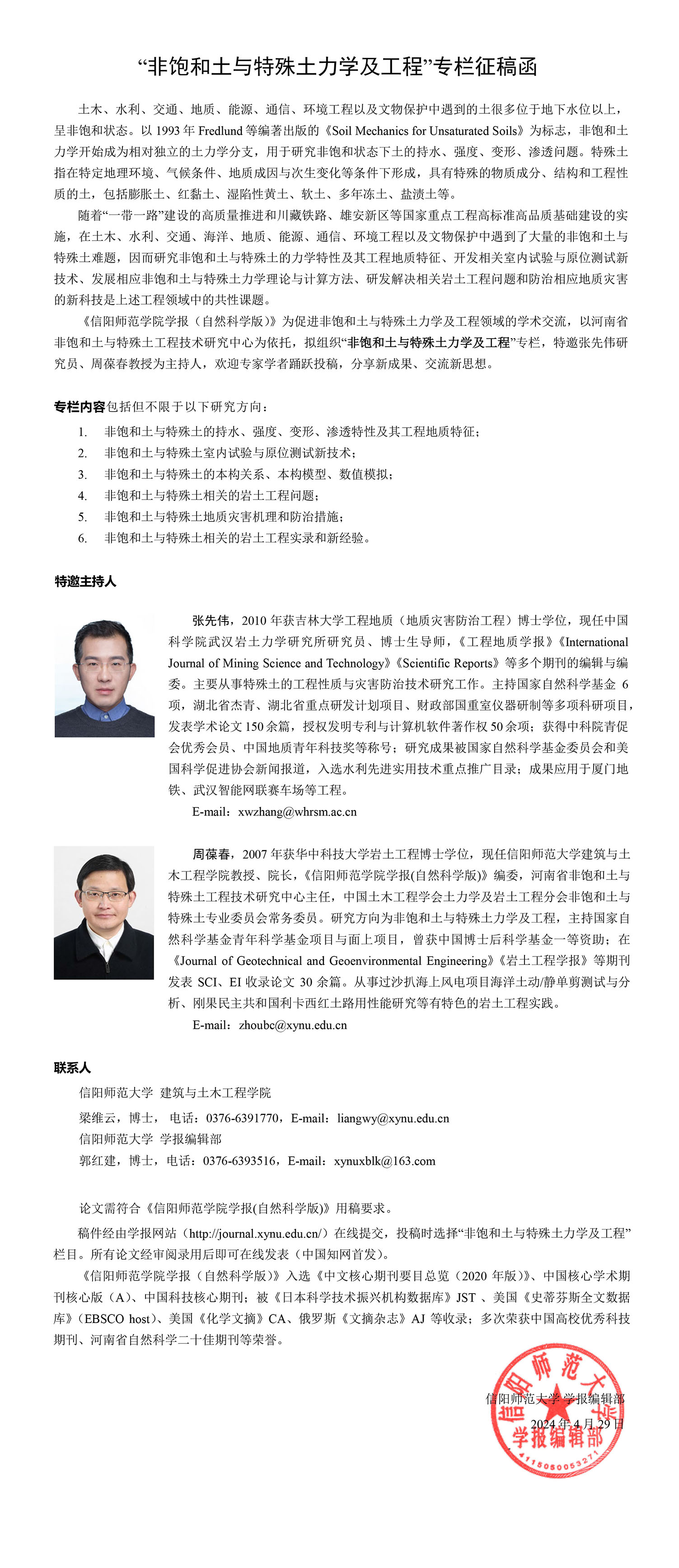 “非饱和土与特殊土力学及工程”专栏征稿函